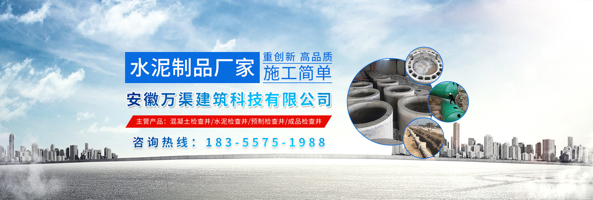 黃山市萬順建筑科技有限公司是集研發,生產制造,市場推廣為一體的綜合性企業。公司主要經營環保型預制鋼筋混凝土裝配式組合型檢查井和蓄水裝置等城建配套產品。產品生產過程采用獨特的生產工藝,機械化流水作業。產品大規模生產,生產效率高,耗能少,成本低,產品使用壽命長、免維護、無滲漏、無污染,符合“綠色環保,低碳節能”的發展要求,是傳統磚砌井池的理想替代產品。
